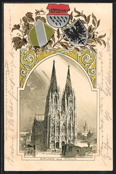 Passepartout-Lithographie Köln, Dom mit Stadtwappen