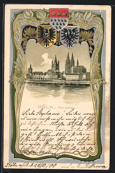 Passepartout-Lithographie Köln, Stadtpanorama, Wappen