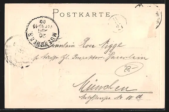gelaufen 1900, Briefmarke entfernt, guter Zustand