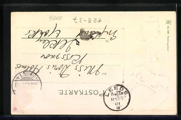 gelaufen 1901, Briefmarke tw. entfernt, rückseitig Oberflächenschaden, guter Zustand
