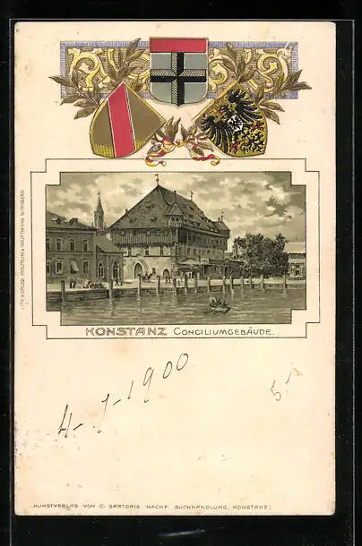 Passepartout-Lithographie Konstanz, Conciliumgebäude, Wappen