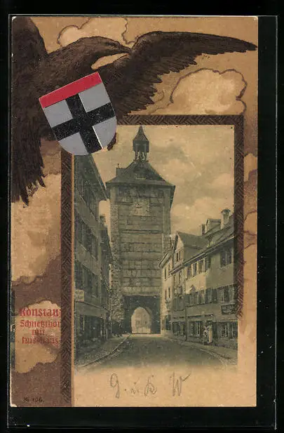 Passepartout-Lithographie Konstanz, Schnetzthor mit Husshaus