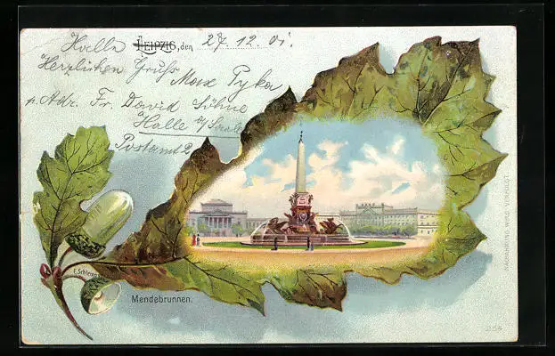 Passepartout-Lithographie Leipzig, Mendelbrunnen