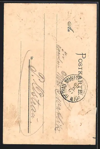 gelaufen 1900, rückseitig Oberflächenschaden, Briefmarke entfernt, guter Zustand