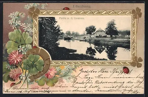 Passepartout-Lithographie Lüneburg, Partie an der Ilmenau
