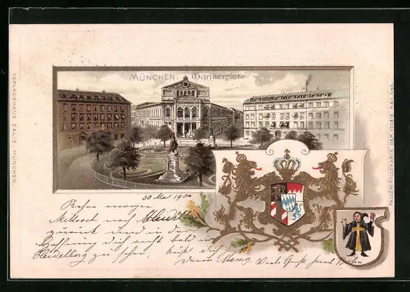 Passepartout-Lithographie München, Gärtnerplatz, Wappen