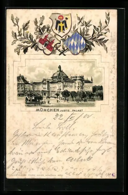 Passepartout-Lithographie München, Justiz-Palast, Wappen