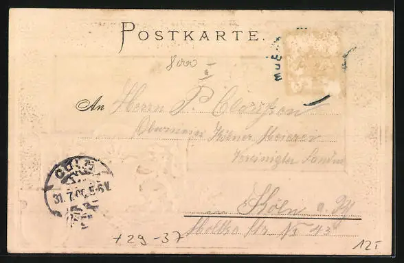 gelaufen 1900, Briefmarke entfernt, rückseitig Oberflächenschaden, guter Zustand
