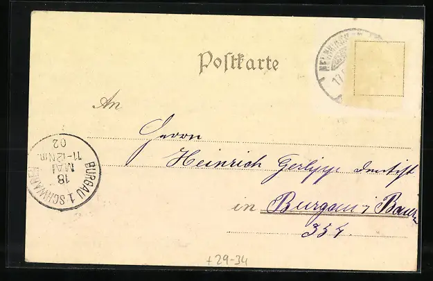 gelaufen 1901, Briefmarke entfernt, Bugspuren oben li., guter Zustand