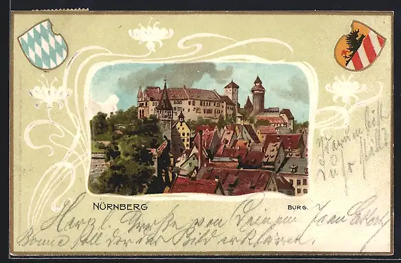 Passepartout-Lithographie Nürnberg, Burg und Wappen