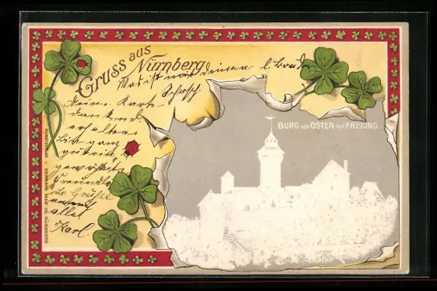 Passepartout-Lithographie Nürnberg, Burg von Osten mit Freiung