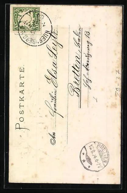 gelaufen 1904, Bugspur li. unten, Stempelspur, guter Zustand