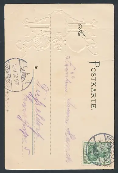 gelaufen 1905, Eckknick re. oben, Bugspuren oben, guter Zustand