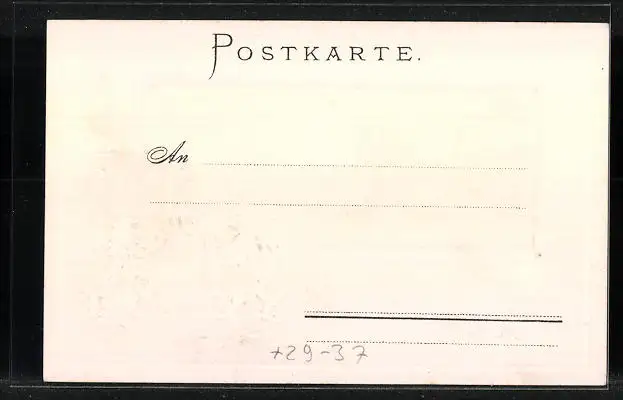 Personenbezogene Daten auf der Rückseite der Karte wurden durch blauen Textmarker unkenntlich gemacht. Die blauen Stellen sind auf die Vorderseite durchgeweicht und wirken sich negativ auf das Postkartenfoto aus