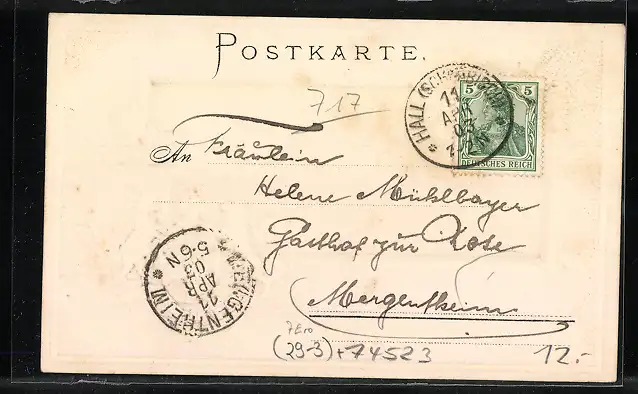 Weitere Ansichtskarten zur Postleitzahl 74523