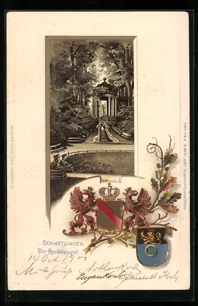 Passepartout-Lithographie Schwetzingen, Am Apollotempel, Wappen