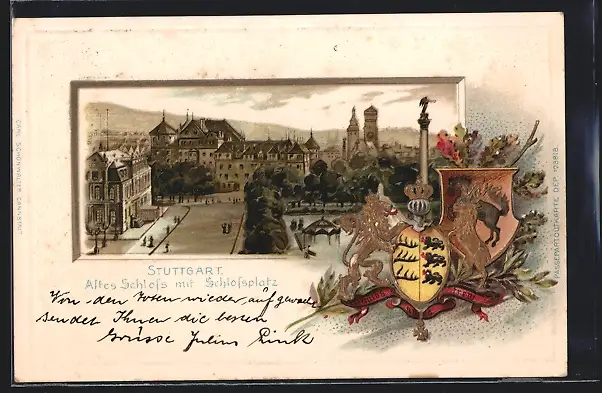 Passepartout-Lithographie Stuttgart, Altes Schloss mit Schlossplatz