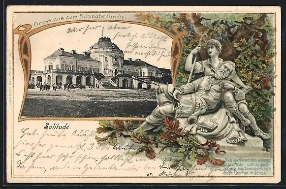 Passepartout-Lithographie Stuttgart, Blick auf Schloss Solitude