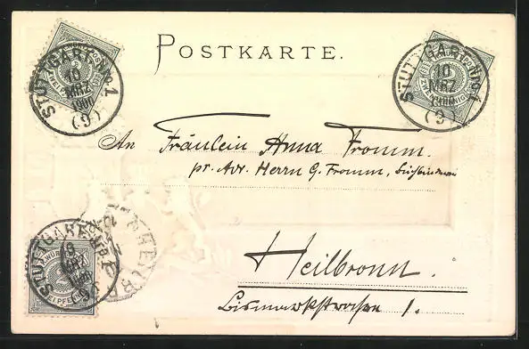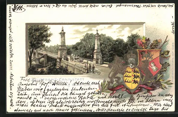 Passepartout-Lithographie Stuttgart-Cannstatt, König-Karlbrücke, Wappen