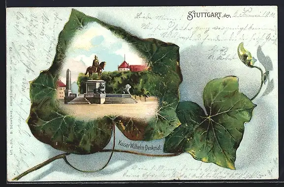 Passepartout-Lithographie Stuttgart, Kaiser-Wilhelm-Denkmal