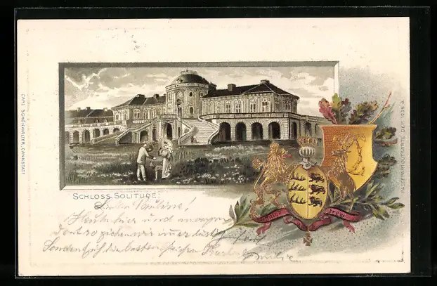 Passepartout-Lithographie Stuttgart, Schloss Solitude, Wappen