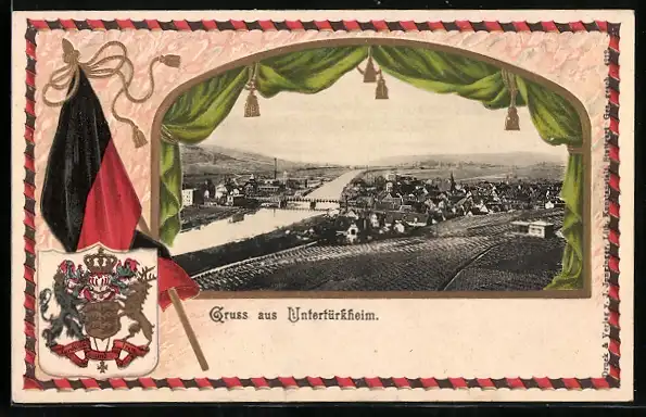 Passepartout-Lithographie Untertürkheim, Panoramablick auf die Ortschaft