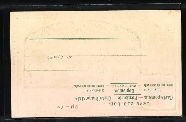 Personenbezogene Daten auf der Rückseite der Karte wurden durch blauen Textmarker unkenntlich gemacht. Die blauen Stellen sind auf die Vorderseite durchgeweicht und wirken sich negativ auf das Postkartenfoto aus