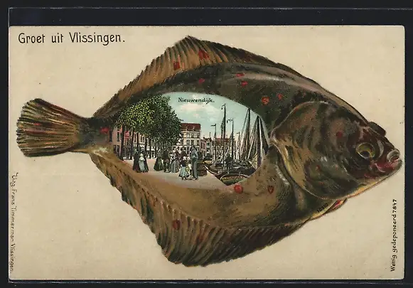 Passepartout-Lithographie Vlissingen, Nieuwendijk, Schol