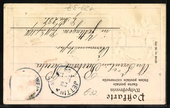 gelaufen 1904, Briefmarke entfernt, rückseitig Oberflächenschaden, guter Zustand