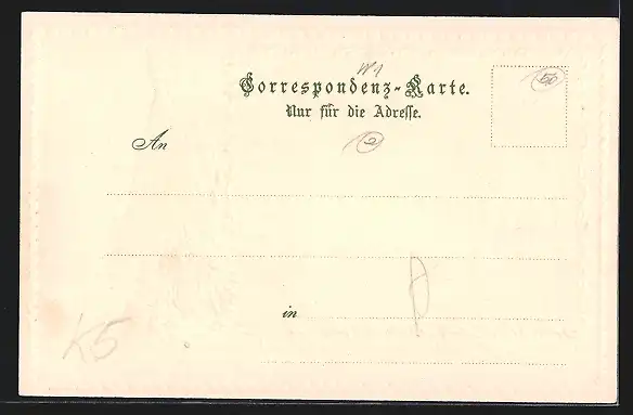 Personenbezogene Daten auf der Rückseite der Karte wurden durch blauen Textmarker unkenntlich gemacht. Die blauen Stellen sind auf die Vorderseite durchgeweicht und wirken sich negativ auf das Postkartenfoto aus