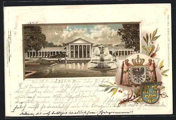 Passepartout-Lithographie Wiesbaden, Colonnaden, Wappen