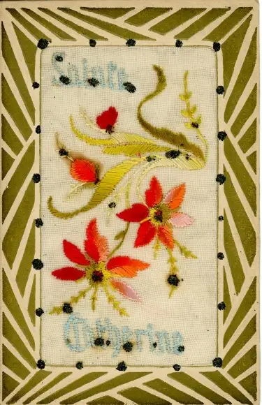 Passepartout Seidenstick Ak Blühende Blumen, Kitsch