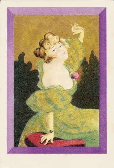 Passepartout Stoff Ak Frau in grünem Kleid, Porträt