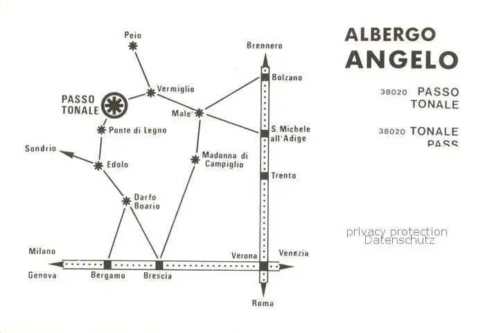 Passo_Tonale Albergo Angelo Passo_Tonale postalisch nicht gelaufen nach 1965 Werbekarte (keine Postkarte) Erhaltung siehe scans [LiesaD40] Werbekarte (keine Postkarte) LiesID40