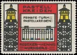 Feinste Turm Pastellkreiden, Größe/Zustand: 4x5 , guter Zustand, Original alte Reklamemarke die seinerzeit für die Werbung benutzt wurde