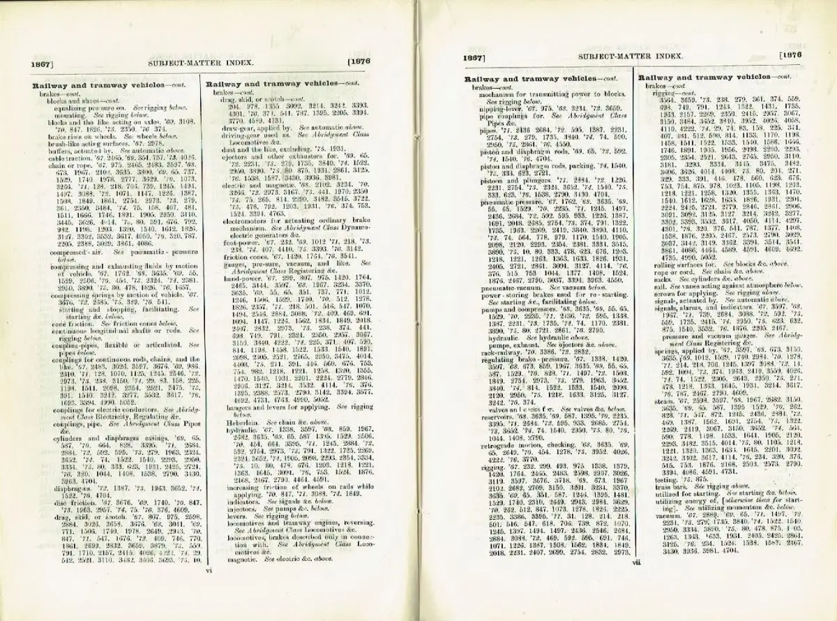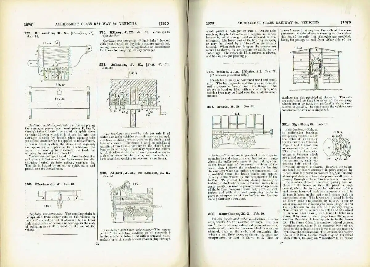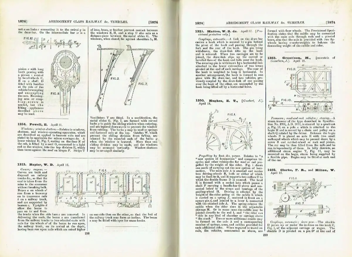 guter Zustand, geringe Gebrauchs- und Alterungsspuren: Bindung hinten etwas gelockert, am Deckel etwas stärker - Papier teils etwas vergilbt, aber Seiten sauber und ordentlich - Seitenschnitt gebräunt, Beschreibungen zahlreicher Patente von Eisenbahn- und Strassenbahn-Wagen, -teilen und -zubehör, Leinen, ca. 18,5 x 27, 503 Seiten mit zahlreichen Bildern