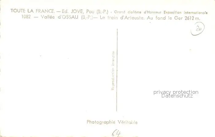 Pau Vall?e d`Ossau Pau postalisch nicht gelaufen 1921-1965 Erhaltung siehe scans [LiesaD40] LiesID40