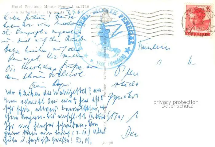Penegal Hotel Pensione Monte Dolomiten Penegal postalisch gelaufen 1961 Erhaltung siehe scans [WerneD78] WernPID7