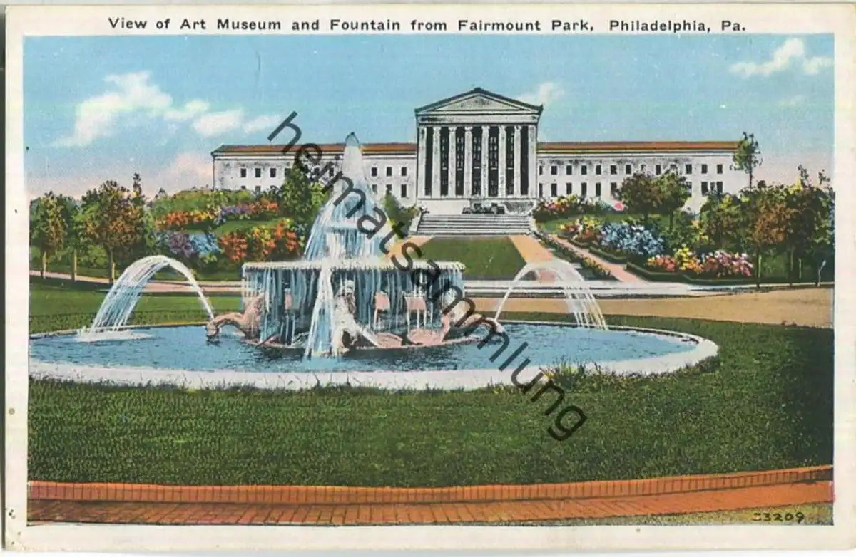 Pennsylvania - Philadelphia - View of Art Museum and Fountain from Fairmount Park - Pub. P. Sander Philadelphia