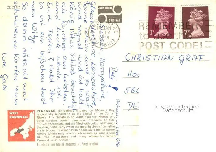 Penzance Panorama Penzance postalisch gelaufen 1979 Erhaltung siehe scans [FriedD77] Frierer
