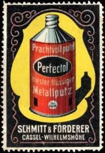 Prachtvoll putzt Perfectol, bester flüssiger Metallputz, Kassel, Größe/Zustand: 5x4 , guter Zustand, Original alte Reklamemarke die seinerzeit für die Werbung benutzt wurde