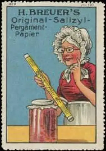 H. Breuers Original-Salizyl-Pergament-Papier, Bild 9, Größe/Zustand: 6x4 , guter Zustand, Original alte Reklamemarke die seinerzeit für die Werbung benutzt wurde