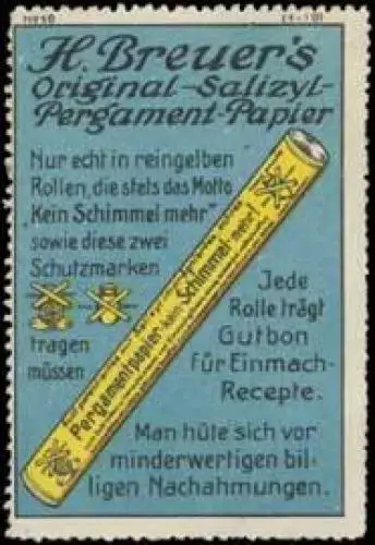 H. Breuers Original-Salizyl-Pergament-Papier, Bild 10, Größe/Zustand: 6x4 , guter Zustand, Original alte Reklamemarke die seinerzeit für die Werbung benutzt wurde