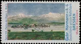 Deutschlands größte Waffelfabrik, Serie: Perlen der Alpen II, Bild 3, Berge, Größe/Zustand: 3x6 , guter Zustand, Original alte Reklamemarke die seinerzeit für die Werbung benutzt wurde