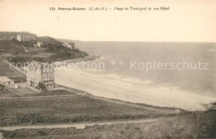 Perros-Guirec Plage de Trestignel et son Hotel Perros-Guirec postalisch nicht gelaufen 1921-1965 Erhaltung siehe scans [WerneD78] WernPID7
