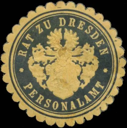 Der Rat zu Dresden, ocker, schwarz, Größe/Zustand: 4 , beschädigt, Original Verschluss-Siegelmarke aus Papier welche früher von Behörden, Firmen etc. zum Versiegeln der Briefe benutzt wurden