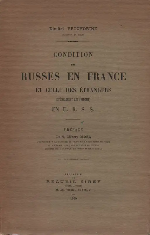 Petchorine, Dimitri: Condition des Russes en France et celle des étrangers (spécialement les Français) en U.R.S.S.