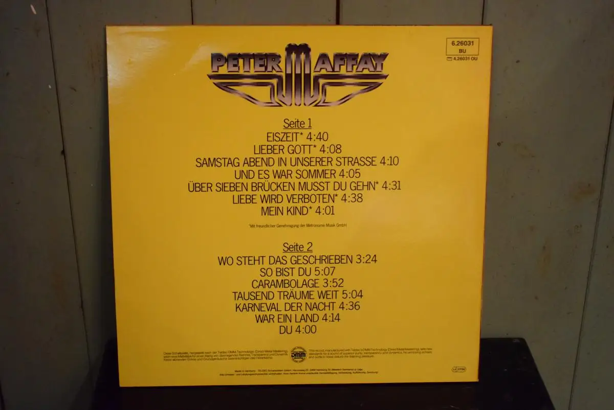 Cover mit geringen umlaufenden Gebrauchspuren, Kante muss geklebt werden , LP mit leichten Gebrauchspuren , spielt sehr gut .