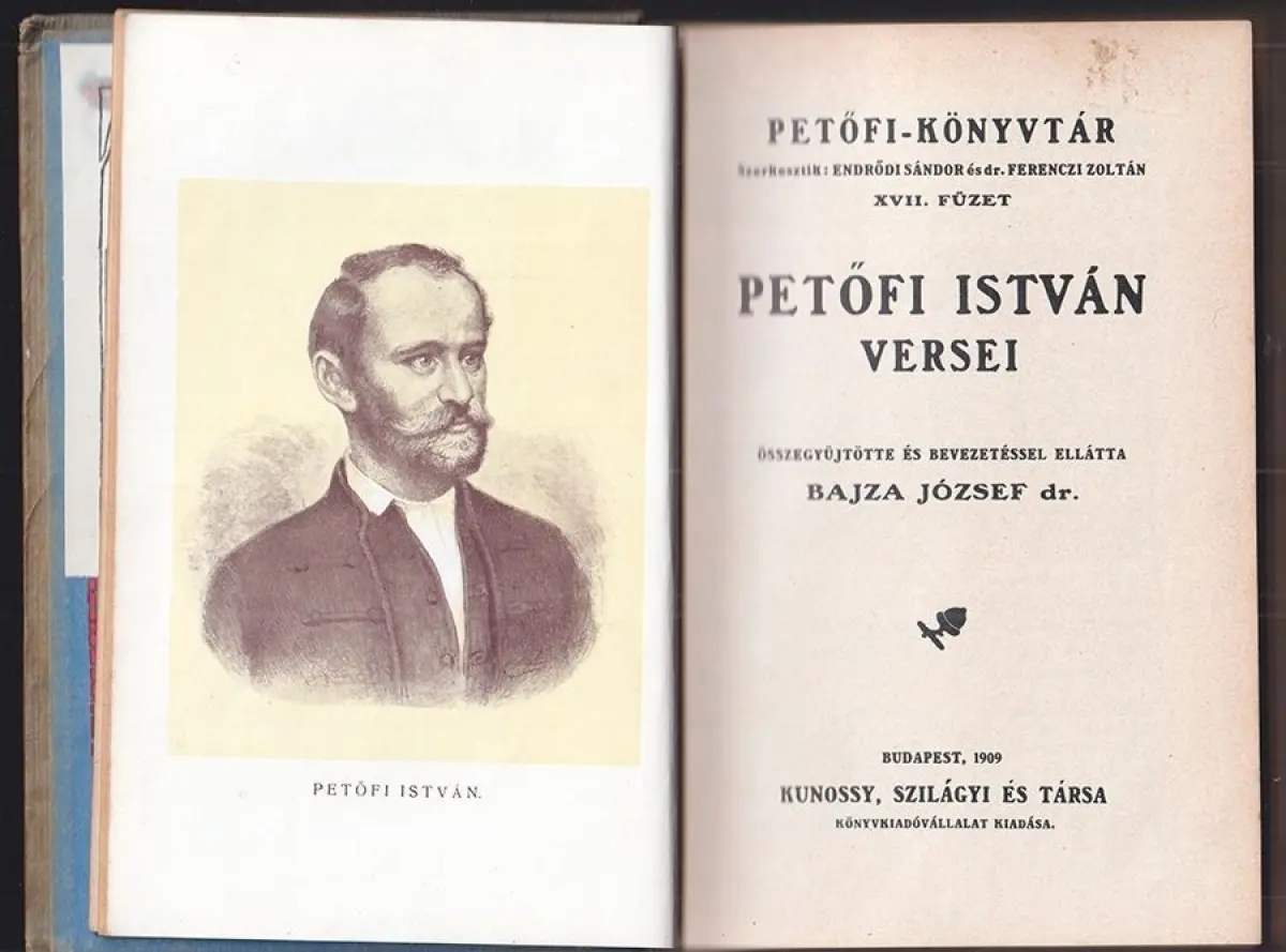 Bemerkungen: Beigabe: PETÖFI Istvan versei. [Gedichte von István Petöfi. Gesammelt und eingeleitet von Joszef Bajza.]. Petzöfi Konyvtàr, XVII. Budapest 1909. 175 S. Mit Titelportr.