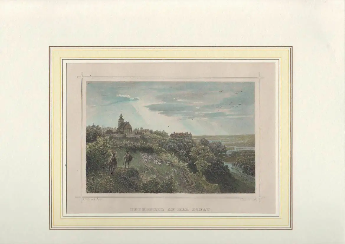 Wien, M. Perles und Darmstadt, F. Lange 1873. Kolor. Orig.-Stahlstich von Rorich nach L. Rohbock. 9, 5 x 14, 5 cm. (Bildgr.). Unter Passep. In gutem Zustand.